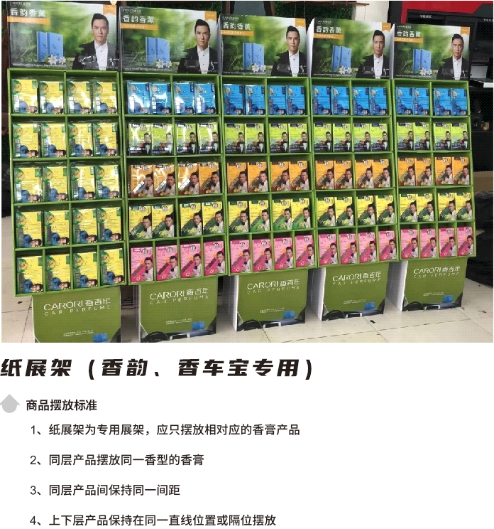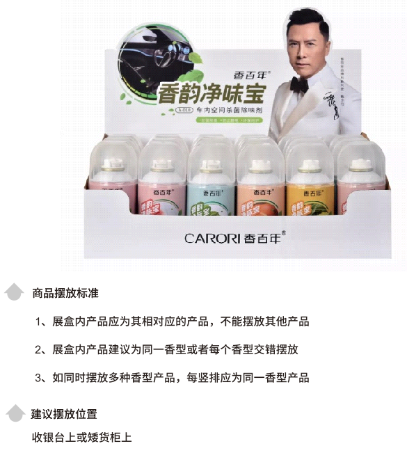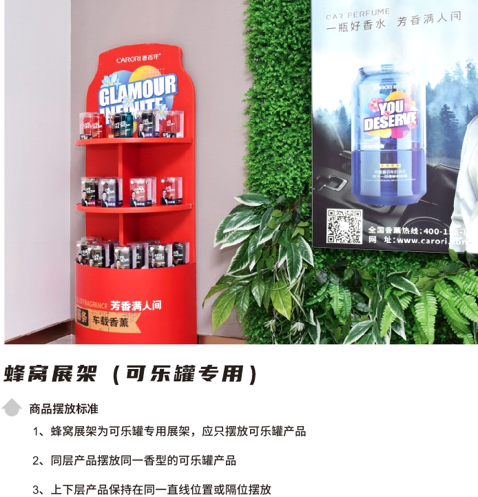 香百年車載香薰體積相對偏小,單個產品很難吸引消費者注意,而展架產品保持滿貨狀態,在視覺呈現上會更加顯眼、美觀,而且更能激發客戶的購物興趣和熱情,因此需要及時補充展架上產品,把每一個展架都擺滿產品,充分發揮展架的倉庫儲蓄作用,杜絕空柜。